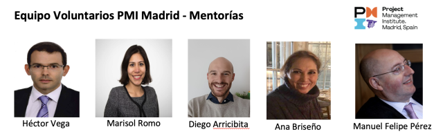 Coordinados por Manuel Ancizu del área de bien social de PMI Madrid, cinco voluntarios del Capítulo apasionados por ayudar realizaron mentorías a distintas organizaciones. Es un gusto para el Capítulo contar con ellos y que las entidades participantes se puedan beneficiar de todo su conocimiento, entusiasmo y experiencia para mejorar la gestión de sus proyectos sociales.